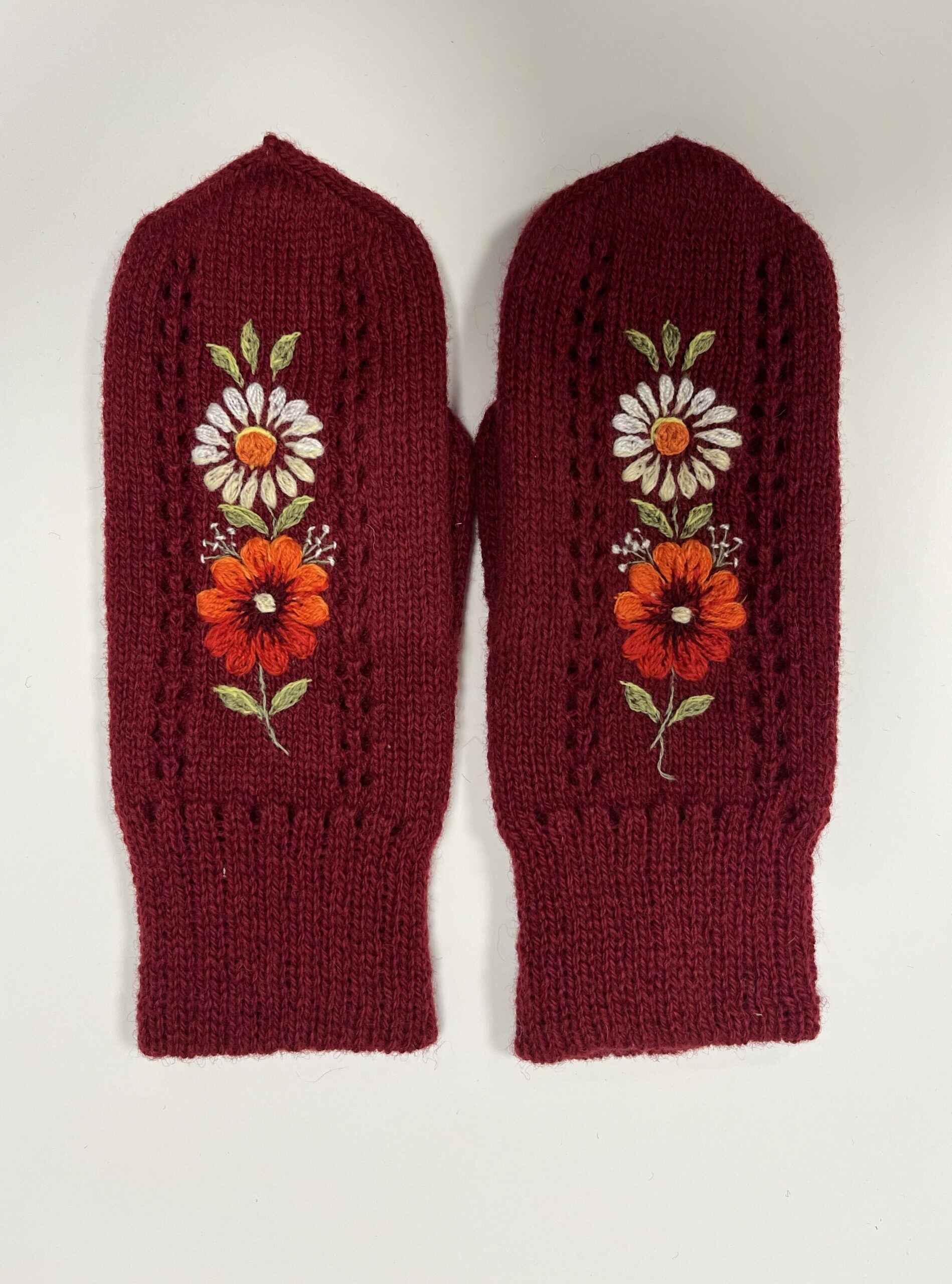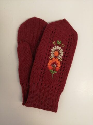 Kinnastel on käsitsi tikitud lillemotiiv.